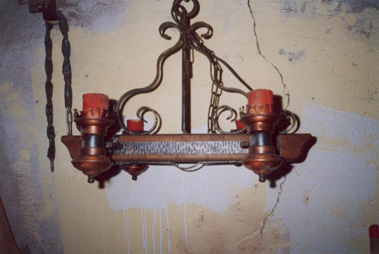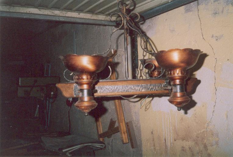 Ich biete hier 2 rustikale Schmiedeeiserne, Lampen , 4 Strahlig mit massiven Holzträger