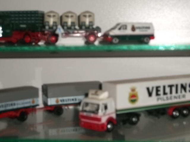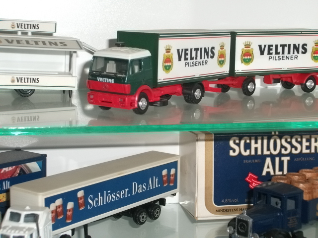 Vitrine mit 20 LKW's, 13 Sattelschlepper 15 Anhäng